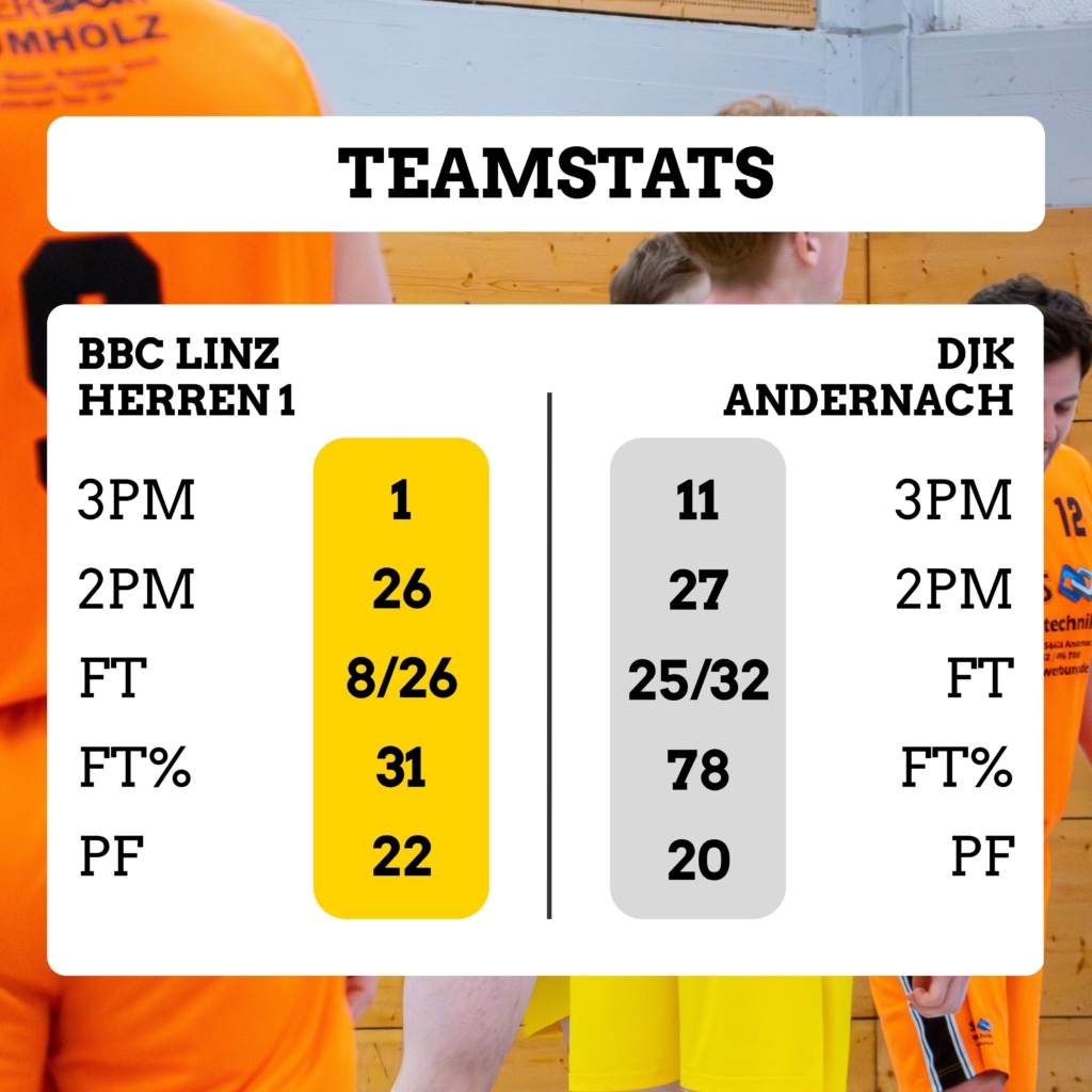 Dabei kam Linz sowohl zu Beginn der Partie als auch nach der Halbzeit ordentlich aus der Kabine. Der Start ins erste Viertel verlief zunächst engagiert, dennoch setzte sich Andernach schnell ab und entschied den Abschnitt mit 28:17 für sich. Im zweiten Viertel erhöhte der Tabellenzweite weiter den Druck, während Linz offensiv nur schwer zu guten Abschlüssen kam (27:12).