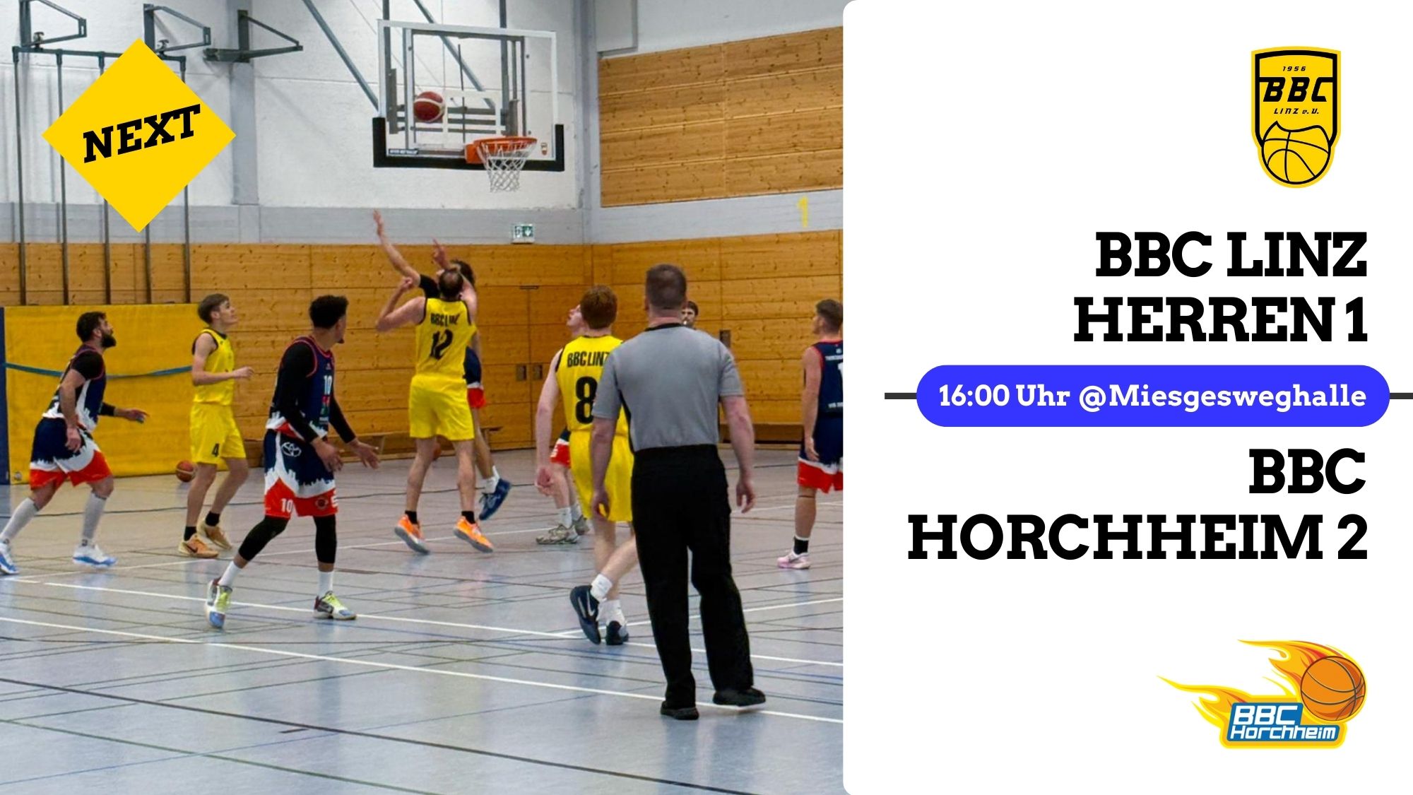 Für die Herren 1 des BBC Linz steht am Samstag, den 24.01., das nächste Heimspiel an. Um 16:00 Uhr empfängt das Team den BBC Horchheim 2 in der Miesgesweghalle.