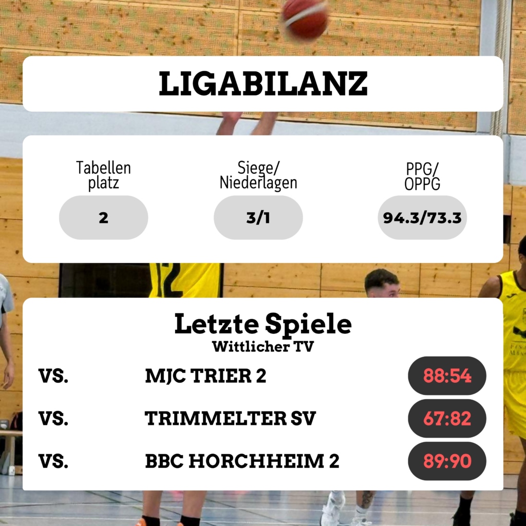 Offensiv braucht es mehr Struktur und eine bessere Punkteverteilung. In den vergangenen Partien fehlte es phasenweise an Durchschlagskraft und klaren Optionen im Abschluss. Mit mehr Bewegung ohne Ball, besserem Spacing und konsequenterem Zug zum Korb soll in Wittlich wieder ein flüssigerer Offensivrhythmus entstehen.