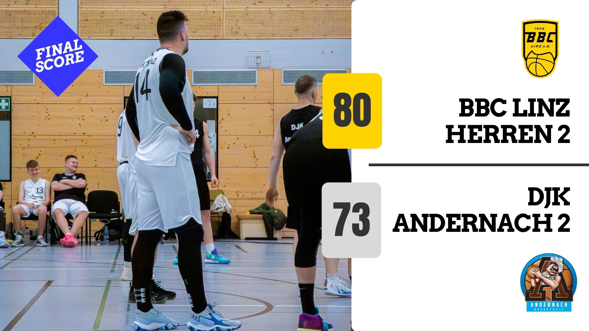 Die Herren 2 konnte am Samstagabend direkt im Anschluss an das Landesligaspiel einen wichtigen 80:73-Heimsieg gegen die Zweitvertretung der DJK Andernach einfahren.